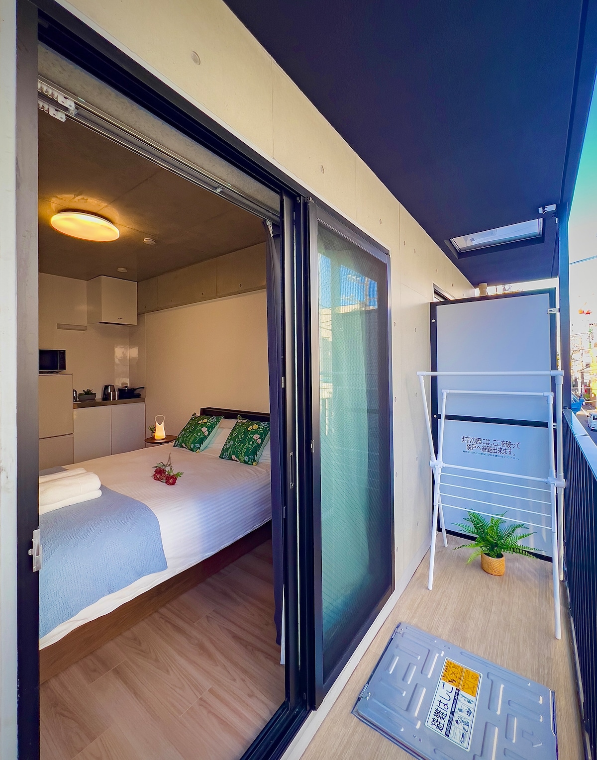 位於東京最具代表性的淺草寺商圈核心地段. 全新打造的工業風高性價比自助入住 HOTEL. 低樓層,沒有設立電梯,房費更便宜. 步行約 6 分鐘即可抵達淺草寺及周邊主要觀光景點. 周邊生活機能完善,鄰近多家特色餐廳、24 小時便利商店、藥妝店與大型超市,短期旅遊與長期入住皆非常適合. ◆ 26㎡ 公寓式雙人房|3楼| •雙人大床 1 張(150cm × 200cm) •桌椅組 1 組 •專屬獨立陽台 房内提供完善的生活家電與設備,讓您在旅途中也能享有如同在家的便利與安心: •免費 Wi-Fi •大冰箱・洗衣機・烘乾機 •微波爐・電磁爐・電熱水壺 •吹風機 •智能免治馬桶 •冷暖氣空調 •全身鏡等一應俱全 為減輕旅途行李負擔,房內已備妥多項生活備品,讓您輕鬆入住: •洗髮精・潤髮乳・沐浴乳・洗手乳 •洗碗精・洗衣精 •浴巾・毛巾・室內拖鞋 •牙刷與牙膏 •衛生紙・面紙 •礦泉水・杯子 •雨傘・香氛擴香機等 專業清潔・安心入住:由日本專業清潔團隊進行全面清掃,床單與寢具皆依照星級飯店標準鋪設並更換,確保每位旅客都能享有乾淨、舒適、安心的住宿.