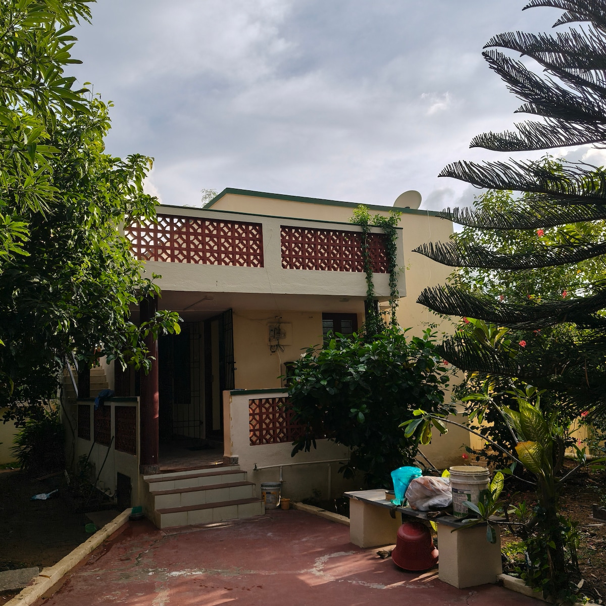 Enjoy a peaceful weekend getaway at our spacious, pet-friendly and family-friendly guest house near Chennai. Just 20 km from Queens Land Amusement Park, this private retreat features a beautiful green backyard garden, high-speed Wi-Fi, and a refreshing swimming pool. Perfect for families with kids, groups, or couples looking for a quiet escape. A private cook can be arranged at an additional charge, so you can relax and enjoy your stay stress-free.