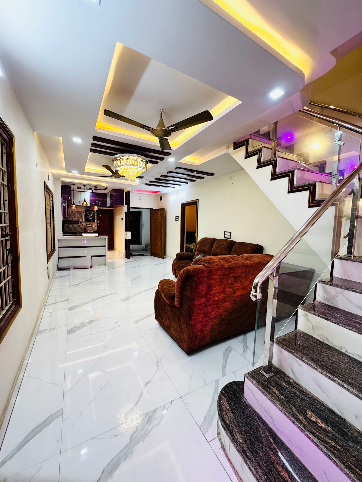 Perfect for families or friends, this accommodation features an open space and a balcony. Peaceful stay, 5 minutes' drive to the Vizag stadium. Fast WiFi, a fully equipped kitchen and access to a co-working space on the top floor make it your ideal home-away-from-home.