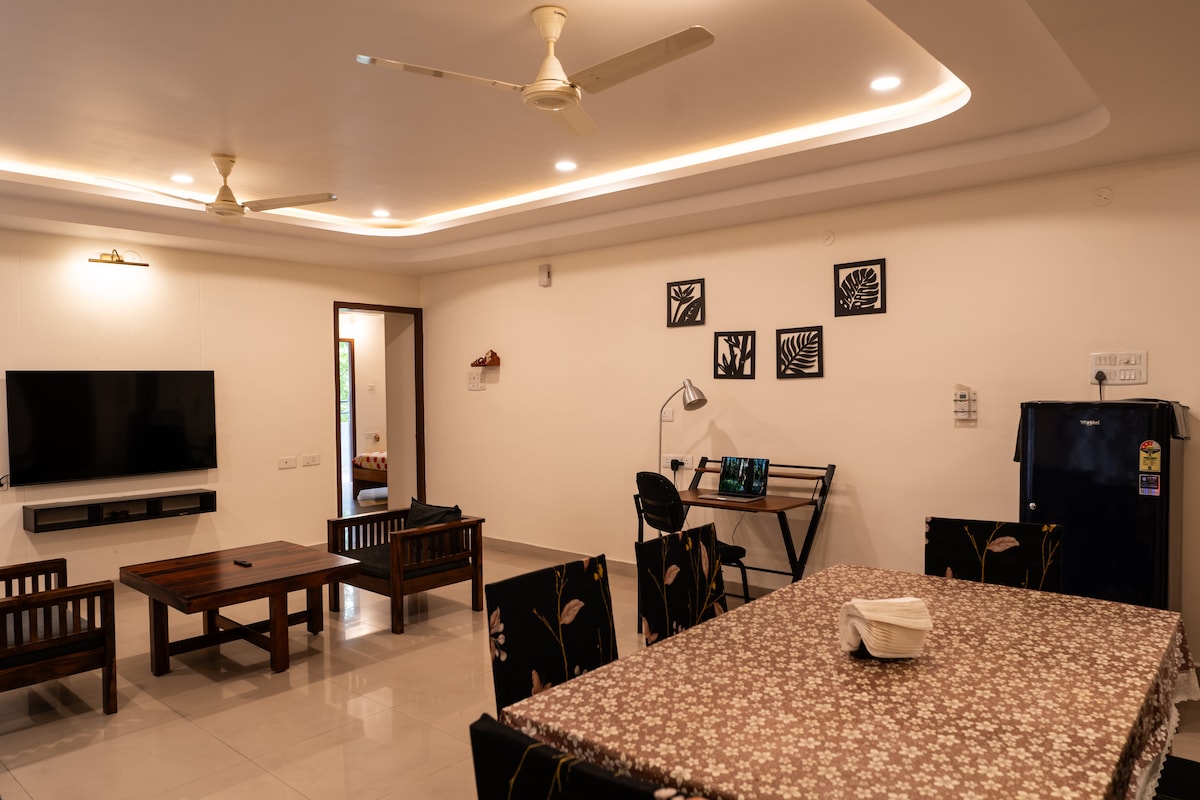 TaraKiran Nilayam is designed for your comfort and convenience, with full furniture and ventilation to ensure a relaxing and enjoyable stay. You'll have access to modern amenities such as high-speed internet, elevator and TV, making it easy to stay connected and entertained. This stunning house offers a unique and memorable living experience, with natural surroundings and unique features that make it a special place to call home. your stay will be enchanting and satisfying.