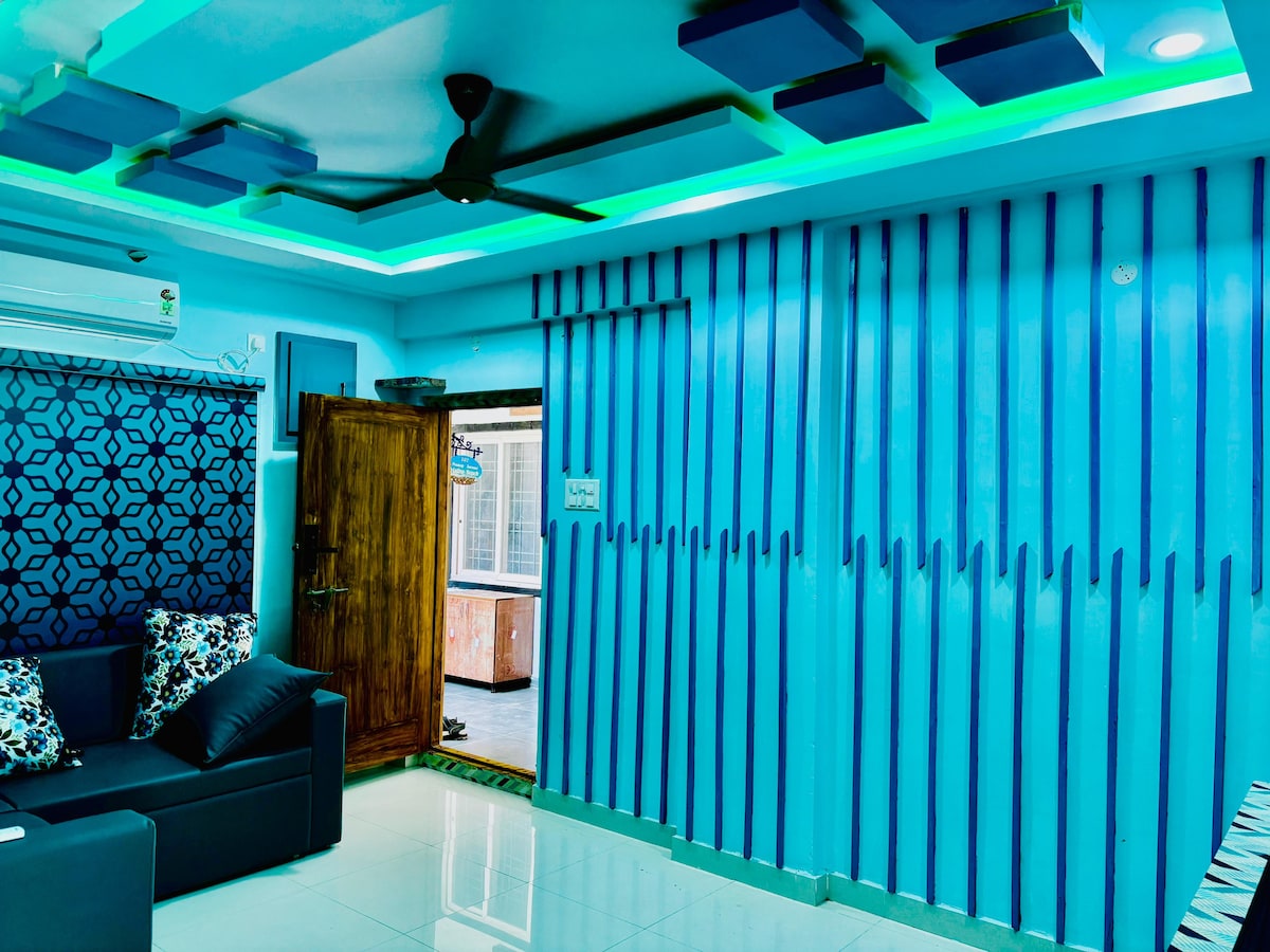 A luxurious coastal escape just steps away from pristine sandy shores. Nestled in the city centre this homestay offers an idyllic retreat for Families, Working Professionals, Corporate meetings & Reunions and Weekend Getaways. Enjoy a fully equipped modular kitchen, cozy living area, home theatre and an open area of the ocean view! Along with our unparalleled hospitality this is your perfect home away from home.