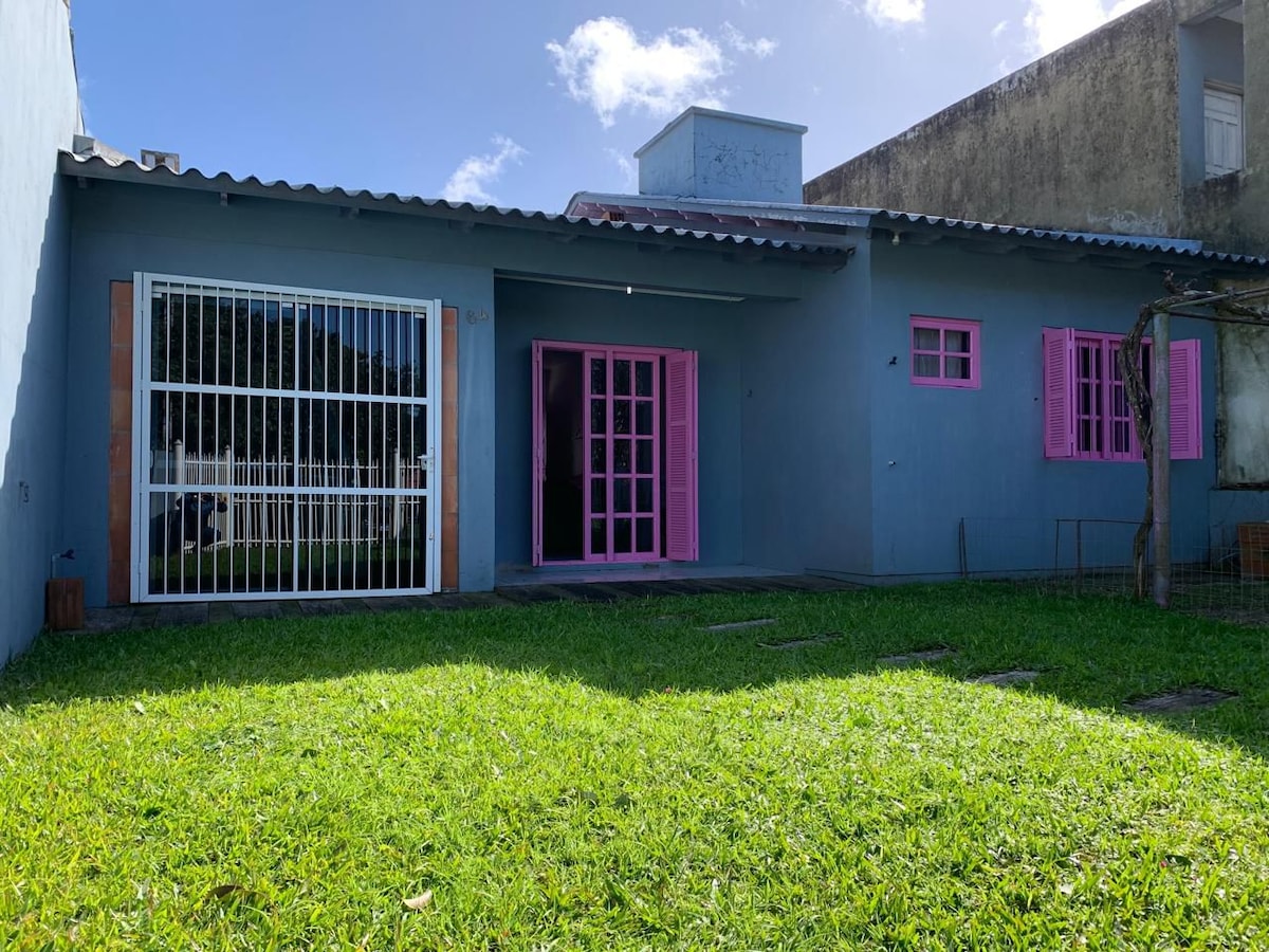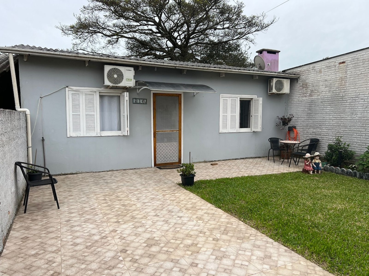 A casa se encontra num bairro calmo de Arambaré, a + ou - 250 metros da lagoa dos patos, a casa possui 3 quartos, sendo uma suíte, 2° quarto com uma cama de casal, 3° quarto com um beliche e uma cama de solteira, todos com ar condicionado, a sala de estar e interligada com uma cozinha e possui televisão smart, ventilador, sofá e duas poltronas na sala e na cozinha e equip. com geladeira frostfree, torradeira, cafeteira, forno de micro-ondas e elétrico e fogão. Garagem c/ churrasqueira e Wi-Fi.