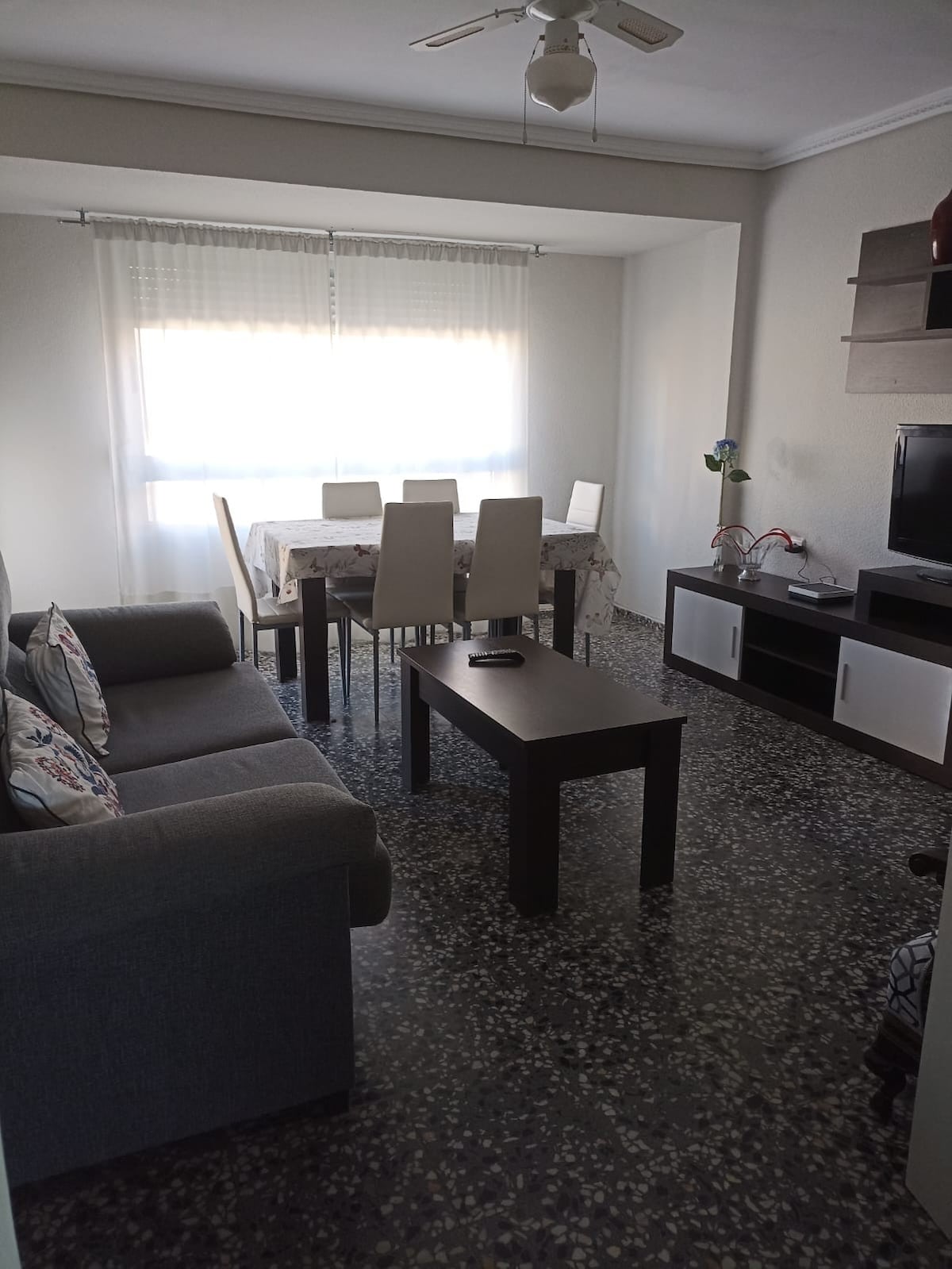 Apartamento de dos habitaciones, una de ellas con dos camas individuales y la otra con una cama individual. Está situado en la segunda planta, SIN ascensor. Tiene baño independiente, cocina - salón - comedor. La capacidad total de este alojamiento es para tres personas. La cocina está totalmente equipada (cafetera, microondas, nevera-congelador, lavadora, utensilios de cocina, cubertería, vajilla, productos de limpieza). El baño, por su parte, también dispone de papel higiénico, jabón de manos y gel/champú. Las camas tienen almohadón, sábanas, manta y colcha. Además, hay un juego extra de mantas. La toallas también están incluidas. PRECIO PARA UNA PERSONA: se dispondrá de una sola habitación.