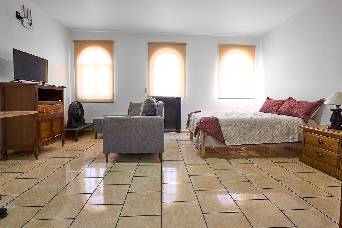 Apt Magnolia (B)—Phenomenal view with a blend of luxury and comfort 5-min drive from Tepatitlan's vibrant downtown. With room for 6, ample space features 2 comfortable beds, a cozy sofa-bed, and high-end amenities like Fiber-Optic Wi-Fi, Smart TVs, kitchen and an in-unit washer and dryer. Nestled in a tranquil, secure neighborhood, you're minutes from iconic attractions like the Centenario market, stores and restaurants. Ideal for families and couples seeking romance and relaxation. Book now!