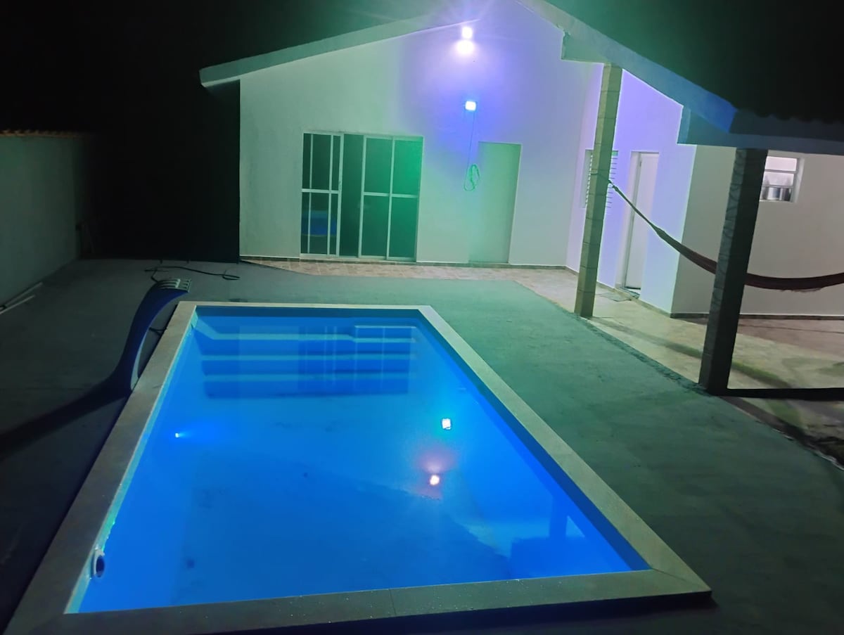 Bela casa localizada no Balneário Costa Azul, a 200 metros do calcadão de 1500 metros de extensão, com bares e uma linda praia, a 500 metros da área de lazer e Pier Municipal onde você pode desfrutar de um belo por do sol! Espaço arborizado e amplo com gramado, estacionamento para varios carros, piscina 3x6 metros, área de churrasqueira, forno e fogão a lenha na varanda ao lado da piscina, acomodações com 3 quartos para até15 pessoas, 2 banheiros, ampla copa, sala e cozinha no mesmo ambiente.