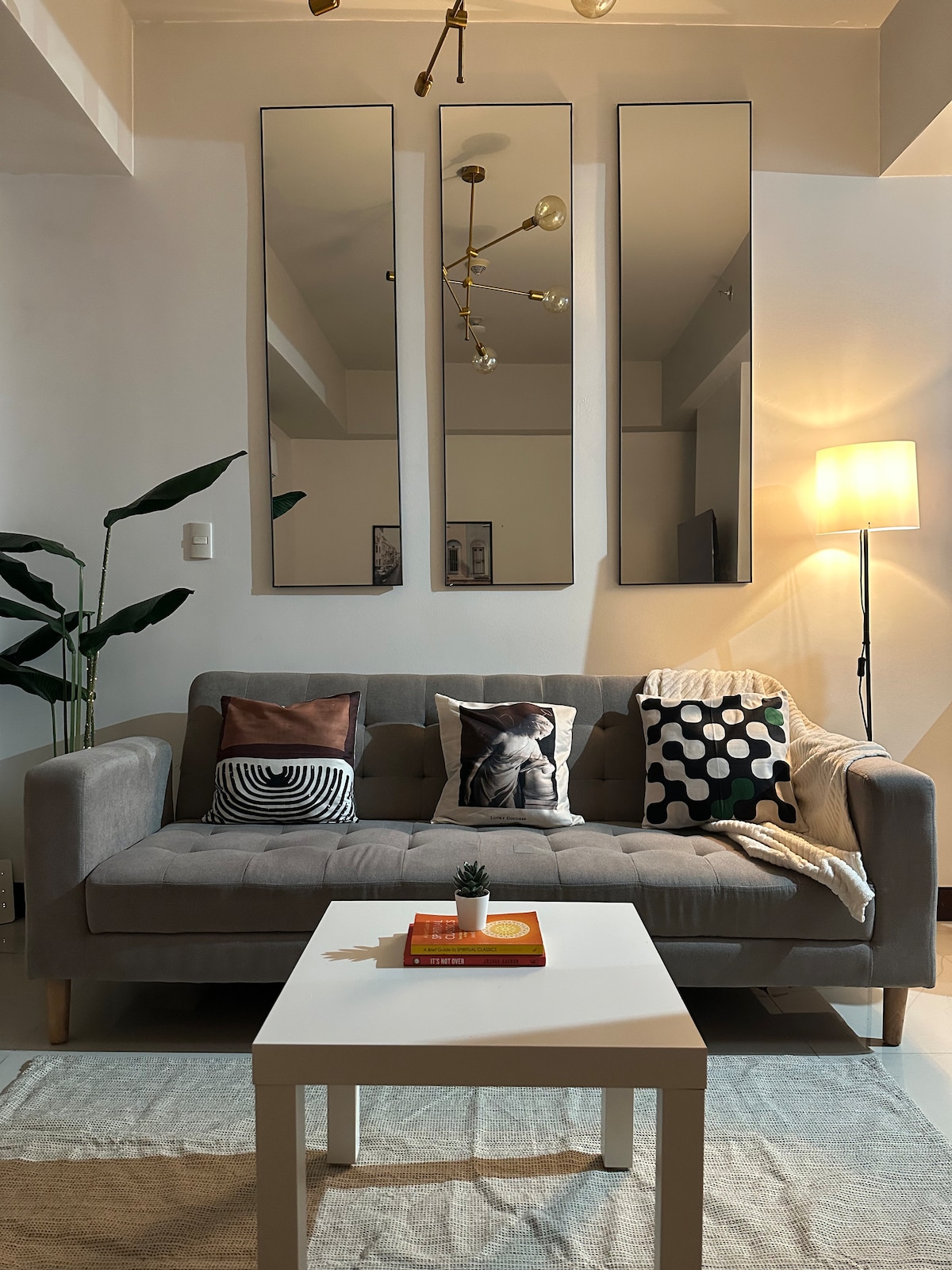 Welcome to our cozy and convenient condo unit overlooking the iconic Araneta Coliseum! Making it the perfect choice for those attending events or concerts there. The minimalist interior creates a tranquil atmosphere, offering a serene retreat from the city's hustle and bustle. Additionally, you can enjoy leisurely walks and take photos in the beautiful garden located on the 4th floor, adding a touch of nature to your stay.