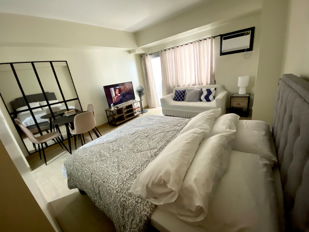 Self check-in Fast 200mbps Wi-Fi Great central location Our fully-furnished, newly-renovated studio unit at Manhattan Parkway is designed with space-maximizing features for your comfort and convenience. It’s a beautiful yet functional apartment with a chic and airy vibe. Our unit is in close proximity to the Araneta Coliseum and the new Gateway Mall 2. This is the perfect location for those who want to enjoy a staycation after watching concerts, shows, games or nightouts.