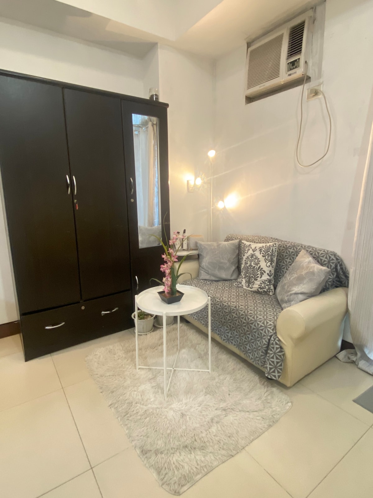 This special place is close to everything, making it easy to plan your visit. Located at the Heart of Araneta City, Cubao Quezon City Manhattan Parkway One The space is fully furnished, newly renovated, warm and luxury vibe. The space is 30 sqm studio unit with 4 sqm spacious balcony facing tower 2 Building and the community Park. Walking Distance to New Frontier Theatre Gateway Malls LRT 2 Araneta Center Smart Araneta Coliseum SM City Araneta City Farmers Market MRT Araneta Cubao Station