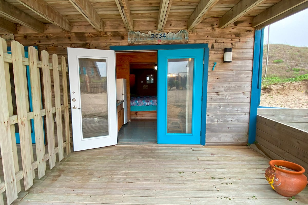 Air-Conditioned Beachfront Suite with Covered Private Deck Providing a View of the Beach & Water 🌊 GOOD VIBES🌴 Perfect for friends, small families, or a relaxing solo escape, this charming 1-bedroom suite with 2 full beds at Sandollar Sity in Port Aransas sleeps up to 4 guests! Full bath, kitchen, cozy sitting & dining space, and a private balcony with incredible views. Enjoy the beach and soak in the chill coastal vibe. 🐚🌴