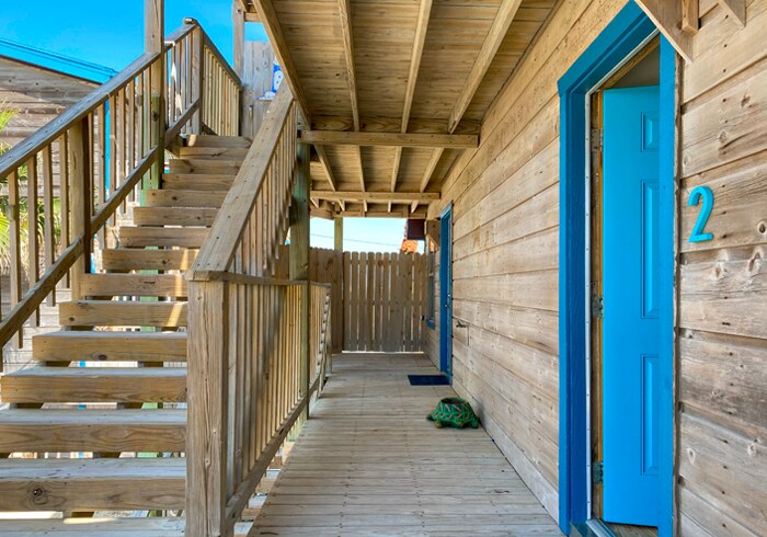 Air-Conditioned Beachfront Room with Covered Semi-Private Deck Providing a View of the Beach & Water Cozy ground-floor efficiencies don’t come any cuter than DUNE DELIGHT at Sandollar Sity, a comfortable slice of Port Aransas paradise. Relax and enjoy scenic views from your semi-private front deck after a long day at the beach or relax indoors with the Smart TV and complimentary WiFi.