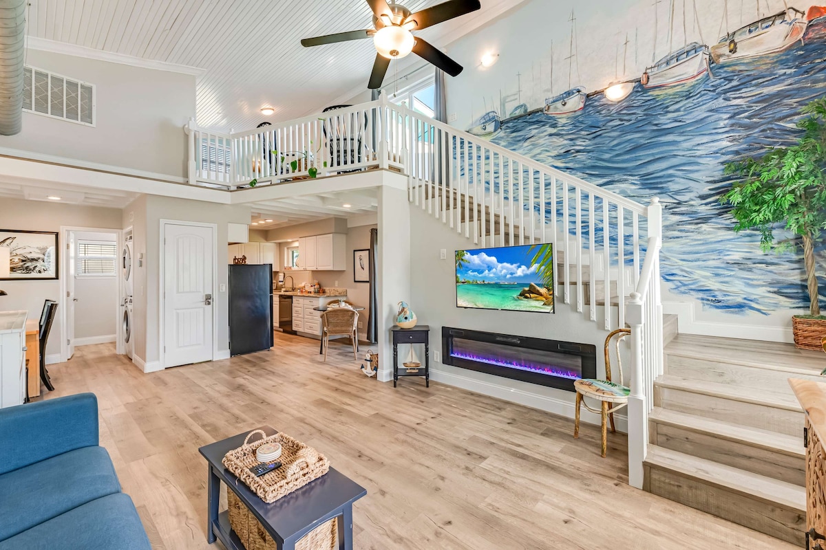 Kick back and relax in this calm, stylish space. With canal access you can enjoy the bay breezes while dining on the back deck. You can stare out at the water while on a zoom meeting or drop a line into the canal to try to catch your dinner. If fishing for glorious sunrises and sunsets is your preferred catch, the views of Salt Lake are yours for the taking from the back deck. Enjoy the breeze off the canal on a hot summer day with an outdoor shower to rinse off. Relax and stay a while.
