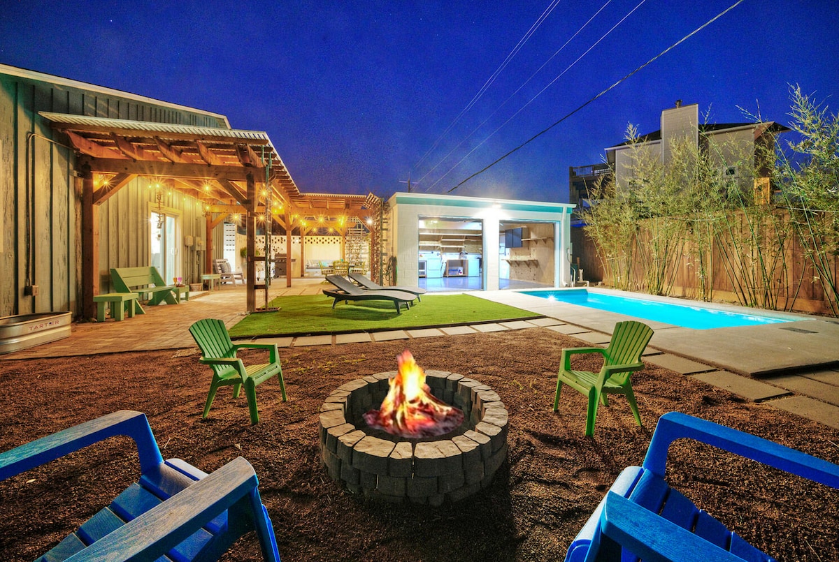 Come make memories at this unique, family-friendly oasis! This retreat promises a luxurious beach vacation! Upscale living, this is simply the finest house in Port Aransas. ~Free Golf Cart ~Very close to the beach ~Private Heated Pool ($50 per day additional cost to heat the pool) ~Fire Pit with wood and s'mores included (November to April) ~Located in the quiet part of town ~Walk to all the restaurants ~Huge outdoor TV with Sonos Soundbar ~Lawn games (Cornhole, Mini Golf) ~Keyless Entry