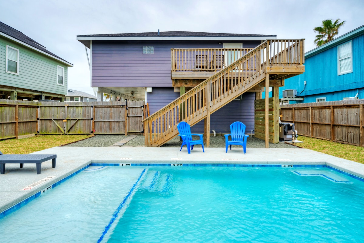 Dockside Delight Beach House in Rockport: a 3-bedroom, 2-bathroom stilt home on a waterfront canal. Perfect for fishing or beach trips, this recently remodeled home features a spacious upstairs deck with views of the canal and Salt Lake in the distance. Inside, you’ll find 3 bedrooms: two with queen beds and one with twin bunk beds. Enjoy the charm of Rockport and make Dockside Delight your next getaway destination!