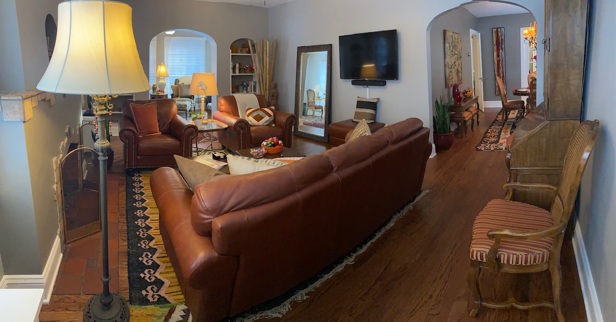 Beautiful walking neighborhood close to Cherry Creek North shopping, dining and parks. The house is a newly renovated 1924 mediterranean home with garden + backyard guest entrance.The guest apartment includes the entire garden -level (windows all around) basement sharing the back entrance. There is no door separating the space, only a back staircase.Two bedrooms, one queen and one w/double +twin bunk beds, private hallway bathroom, Laundry w/washer+dryer, coffee maker, refrigerator +microwave.