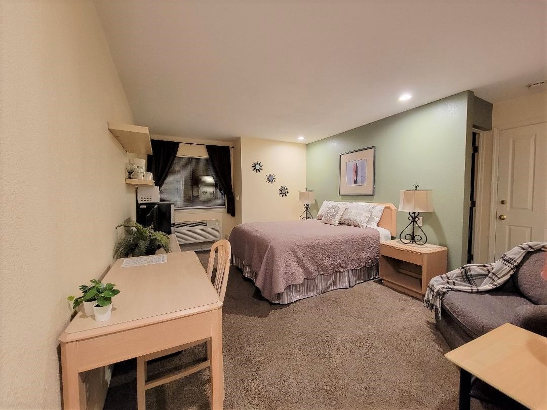 This studio is perfect for a short getaway. Located in a very safe and convenient area. King size bed with top quality bedding sets. Soft towels and toilet paper like you would use at home. It also comes with a small table w/ chairs, a microwave and mini fridge. Other amenities include an outdoor pool and patio areas. HOA doesn’t allow oversized vehicles, trailers or RVs in the lot. This unit isn’t suitable for children. Accommodates up to 2 adults only.