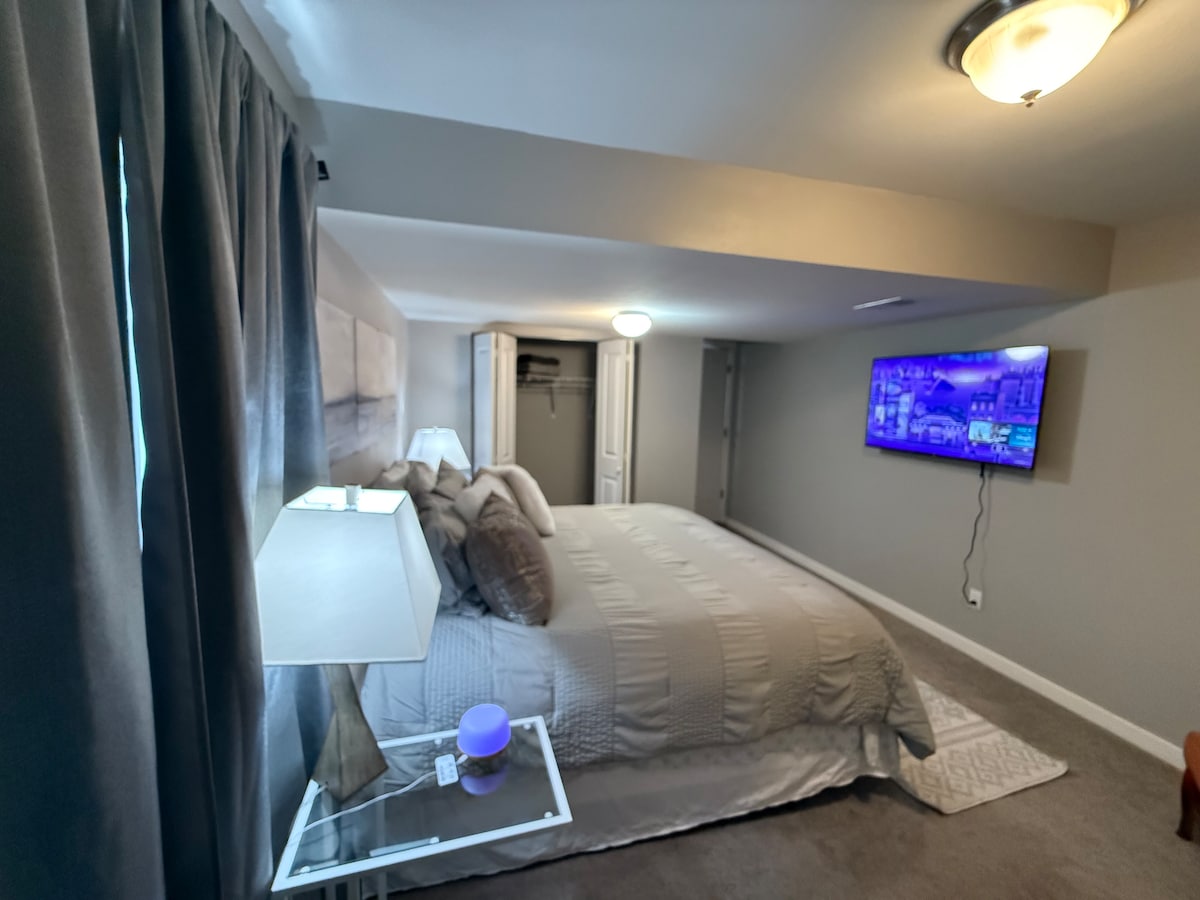 Our apartment has its own entrance and full amenities. You’ll enjoy both comfort and independence during your stay. The suite features a spacious bedroom with a king-size bed and smart TV with fast Wi-Fi, and a clean and modern bathroom. The kitchen includes a fridge, microwave, coffee maker, air fryer, blender, toaster and basic utensils! There is an in-unit laundry, a dedicated parking spot just steps from the door, and code access for self check-in! Enjoy! Please “no unregistered guests”
