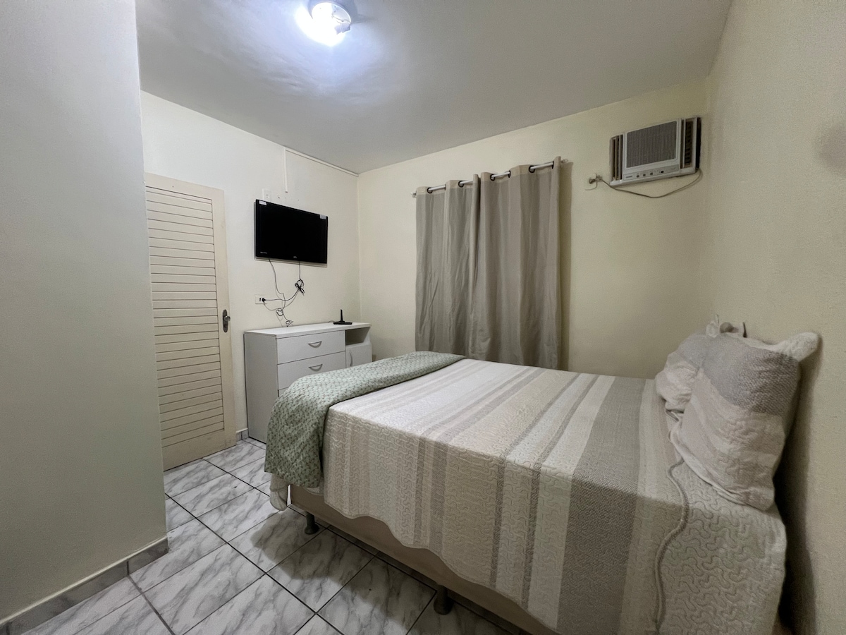 🏢 Apartamento completo 🛏️ 1 cama de casal + 2 camas de solteiro + 🛋️ sofá-cama de casal 🍳 Utensílios de cozinha ❄️ Ar-condicionado na suíte 🌬️ 1 ventilador disponível Wi-Fi disponível Acomoda até 5 pessoas contando com o sofá cama.