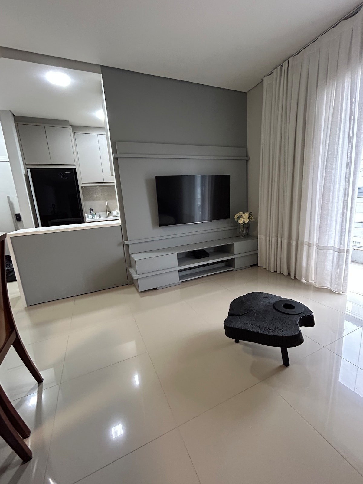 Prédio com piscina, academia, sala de cinema e sala de reuniões. O apartamento oferece comodidades extras como: Lava e seca roupas (sem custo adicional) Ar frio e quente em todos os ambientes Cozinha com 2 pias e água quente Lava louças Tv na sala e na suíte 2 banheiros com chuveiros, shampo, sabonete Na Suíte cama queen e linda vista No quarto cama de solteiro + cama gaveta Cozinha com fogão, Air fryer, Grill, cafeteira de cápsulas, louças, talheres e panelas Sacada com churrasqueira