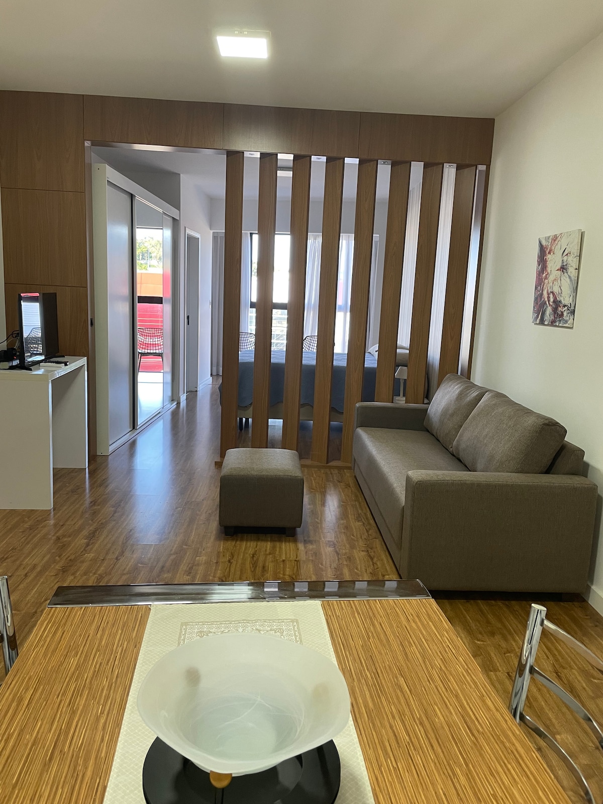 Aconchegante loft, moderno e em excelente localização, cama queen nova, roupas de cama e banho de ótima qualidade, para quem procura uma estadia com muita privacidade e tranquilidade. Internet fibra ótica, TV a cabo