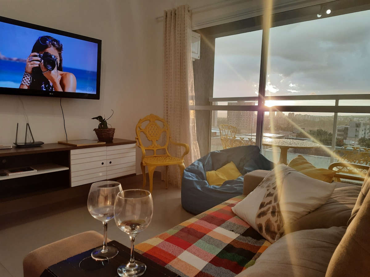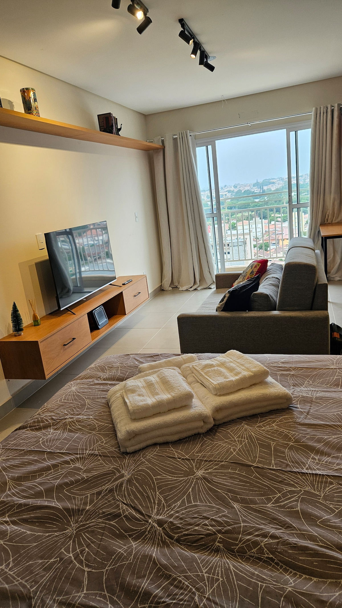 Estúdio aconchegante 12º andar, centro de Araraquara, linda vista da cidade, prédio residencial novo, familiar. Academia, elevador e portaria 24h terceirizada, zeladora em horario comercial. Lavanderia (lava e SECADORAS) 24h gratuita no térreo, Mercado. Cozinha completa, microondas, forno elétrico. SmartTV digital, INTERNET WI-FI. Ambiente ar condicionado. Próximo ao Parque Infantil, rotisseria, padaria, superm, farmácia, tudo a pé. Beautiful Studio on the 12th floor of a family building