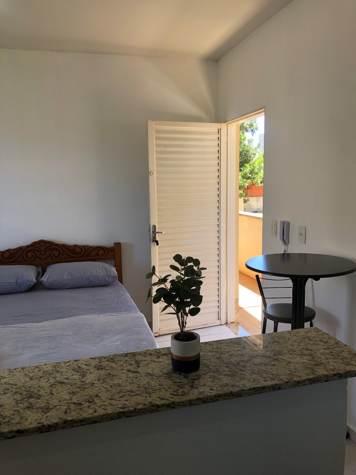 Apartment with backyard. Kitchen equipped with stove, refrigerator, microwave, air fryer, mixer, condiments, sugar, pans, plates, cutlery. New mattresses. Dining room for four people. TV, sofá. Laundry. Covered parking for one car.