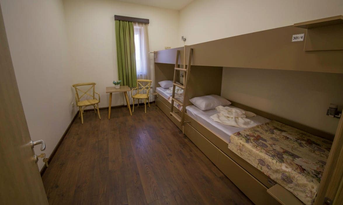 When you book the Quadruple Room at Armenian Inn Hostel you will receive the comfortable beds alongside with a private bathroom, with full access to shared kitchen to prepare your meals and the restaurant downstairs where you can have breakfast with an extra fee.