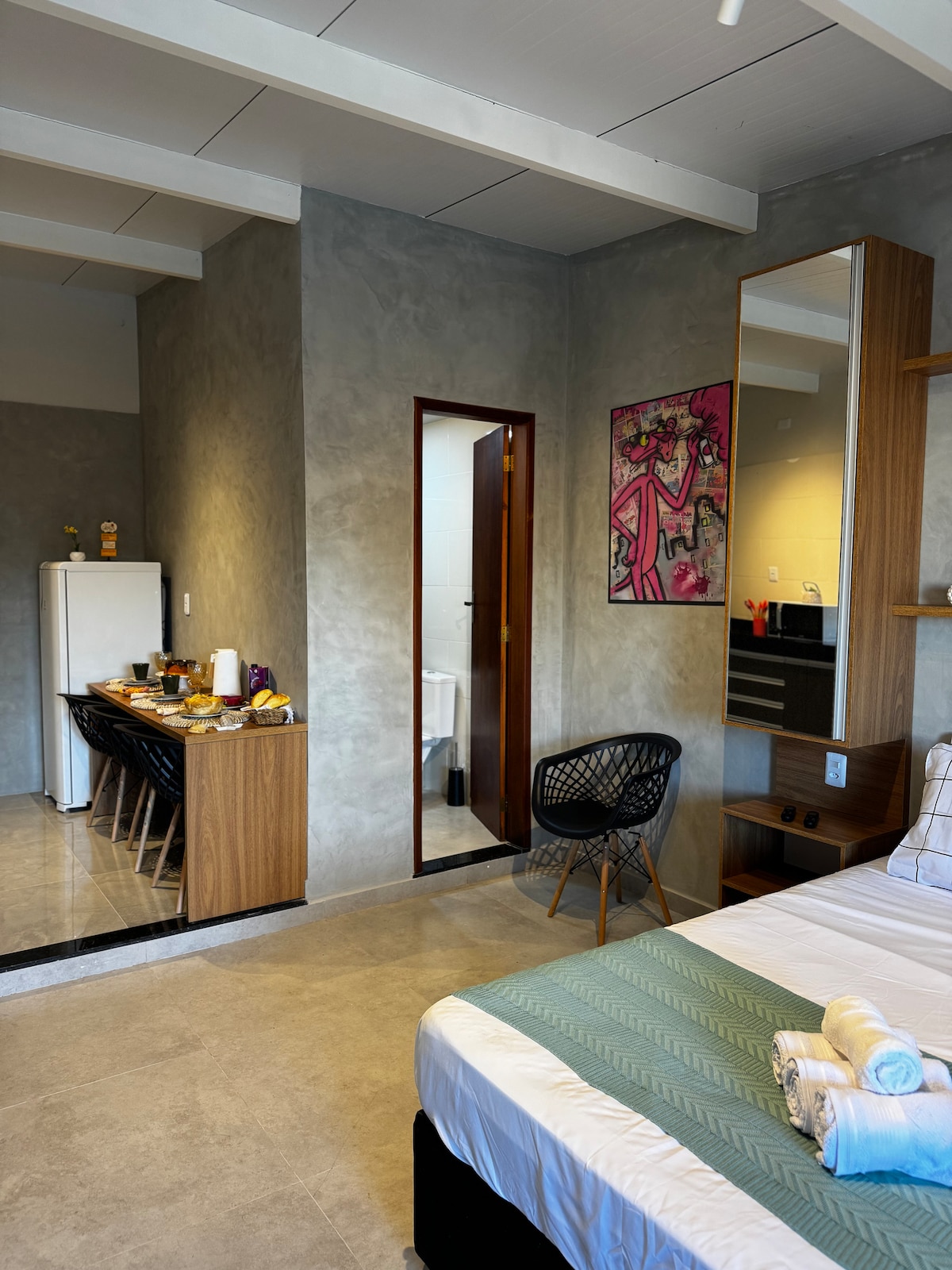 Estúdio com cama de casal, ventilador, televisão e Wi-Fi. Cozinha com geladeira, cooktop, micro-ondas, cafeteira e sanduicheira. Localizado em via principal, local tranquilo a 200 metros da praia Rasa, 1.8 km do centro comercial da Rasa e a 13 km do centro de Búzios. * O estúdio limita-se a 2 pessoas. * Inadequado para crianças e bebês. * Não disponibilizamos toalhas de banho. * Não é permitido visitas e convidados. * Não é permitido animais.