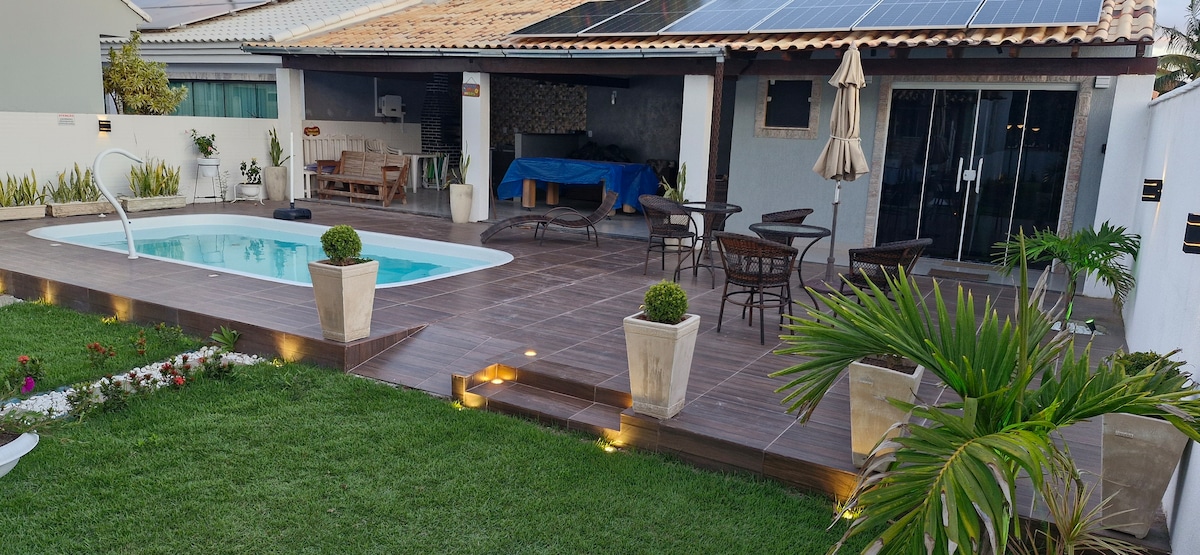 🌟 Bem-vindo à sua Casa Cheiro de Praia!🌟 Descubra o refúgio perfeito para suas férias em Araruama! Nossa casa, localizada no exclusivo Condomínio Sonho de Vida, oferece uma experiência única de conforto, lazer e relaxamento. ✨ Destaques da Casa: 4 quartos espaçosos, incluindo 2 suítes e 2 quartos acolhedores. Uma área gourmet incrível com uma churrasqueira de dar água na boca. Sua própria piscina privativa para momentos de diversão e relaxamento. Segurança 24 horas em um condomínio fechado para tranquilidade total. 🏝️ Comodidades do Condomínio: Parque aquático para refrescantes mergulhos e muita diversão. Brinquedos e área de lazer para as crianças se divertirem. Quadras de futebol para partidas animadas. E muito mais! 🌊 Aproveite o Melhor do Litoral: Sinta a brisa do mar enquanto desfruta da ampla área de lazer, perfeita para momentos em família ou entre amigos. Explore praias nas proximidades e mergulhe na cultura local. 🌈 Experiência Inesquecível em Família: Nossa casa é projetada para criar memórias duradouras. Relaxe nos espaços acolhedores, compartilhe refeições na área gourmet e mergulhe na diversão da piscina. Seu refúgio de férias espera por você! 🔔 Atenção Especial: Siga @casacheirodepraia para não perder nossas incríveis novidades e promoções exclusivas. Lembre-se, proporcionamos a estrutura ideal, mas não fornecemos roupas de cama, banho e objetos pessoais. Prepare-se para viver momentos inesquecíveis em nossa Casa Cheiro de Praia! Reserve agora e transforme suas férias em uma experiência única. Estamos ansiosos para recebê-lo! 🏡✨