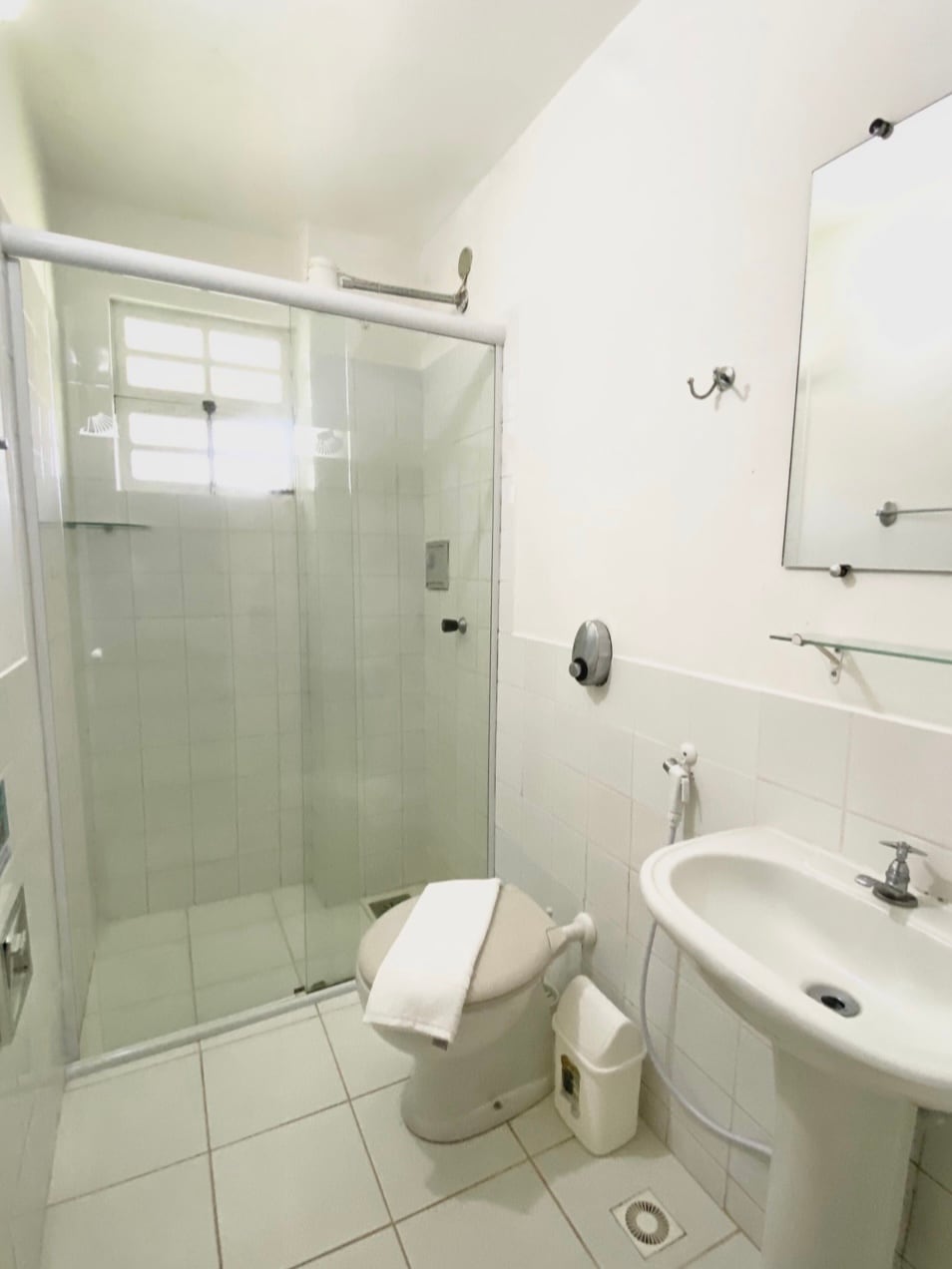 Suíte com cama queen, Smart TV (com canais abertos), ar condicionado, chuveiro elétrico, frigobar e Wi-Fi.