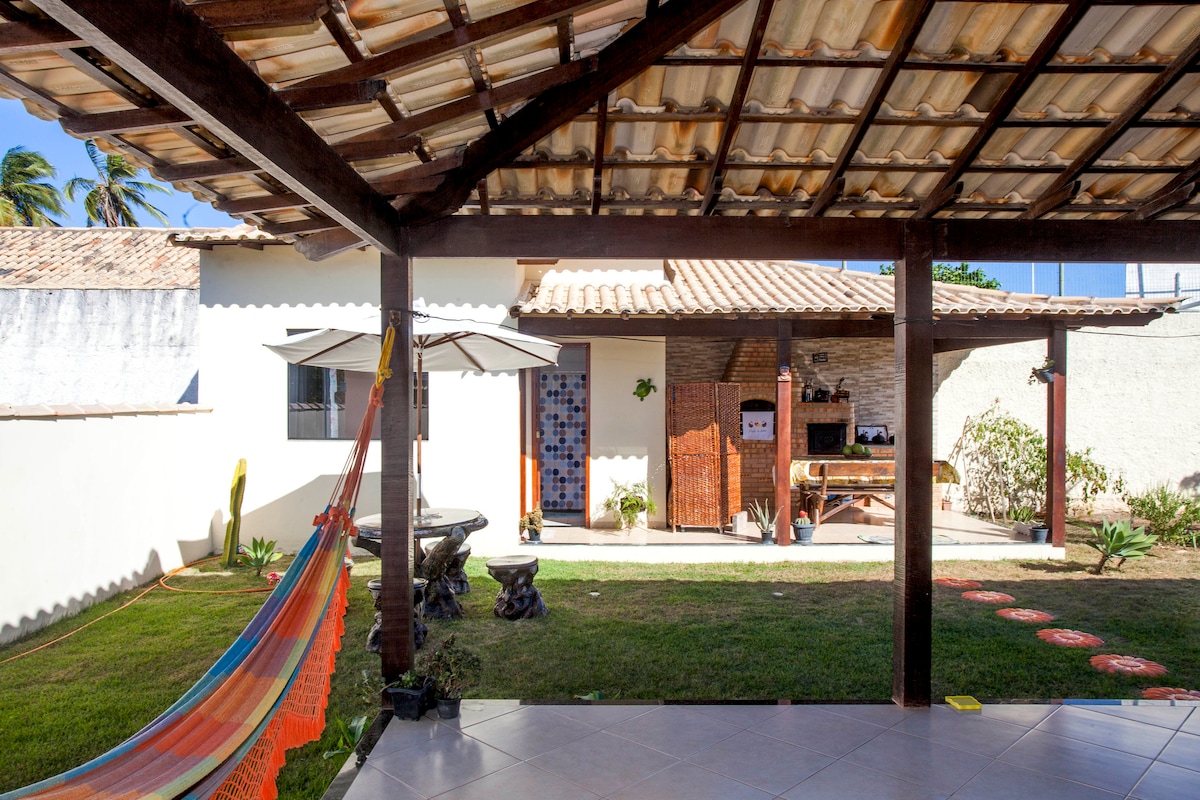Uma casa branca de varanda, um quintal e um janela para ver o sol nascer. Ou seria um vilarejo ali, onde areja um vento bom? Seja qual for a música, se depender da casa e do jardim, a viagem será revigorante! Próximo ao Clube Náutico, à ciclovia, à escola de Kitesurf. Restaurantes e bares por pertinho. Fácil acesso à praça da cidade. Bairro sossegado, residencial. 200 metros da rua principal. 40km de Cabo Frio, 50 km de Arraial do Cabo e 61 km de Búzios. Praia Seca (19km) e Saquarema (22 km).