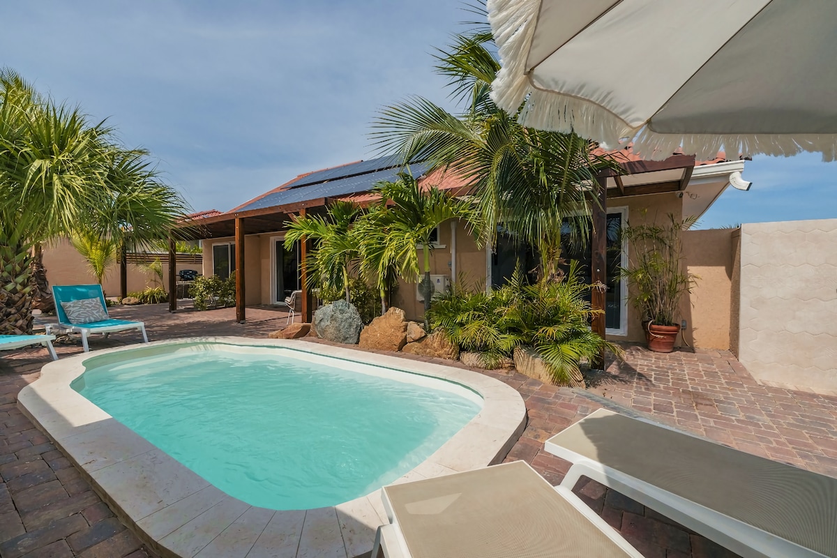 - Brand newly renovated Unit for 2 people - With its own private pool + larger Pool on property. -Premium King Mattress -Full kitchen with Gas cooktop, living area -4 Other units on property but this has its own pool for this unit. -Across the street from Boca catalina one of aruba best secrets for snorkeling and relaxing -Located in "beverly hills of aruba" -We provide beach chairs and beach towels, and cooler. -Free Wifi -Plenty of free parking on-site