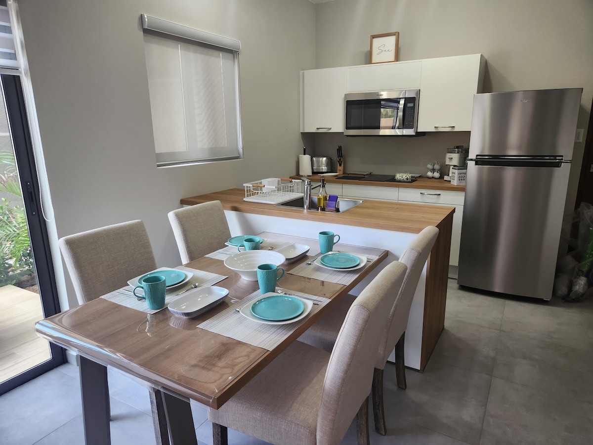 This is the perfect place to get away and enjoy the white sand beaches, beautiful breeze and hot sun of Aruba. Whether you need a couples get away, family vacation or celebrating with friends you won’t be disappointed with this clean, fresh, newly built complex. The newly built pool is located in the center of the property. Equipped with in pool splash pad loungers and lawn chairs for relaxing by the pool. Each apartment has portable beach chairs, beach towels and a cooler.
