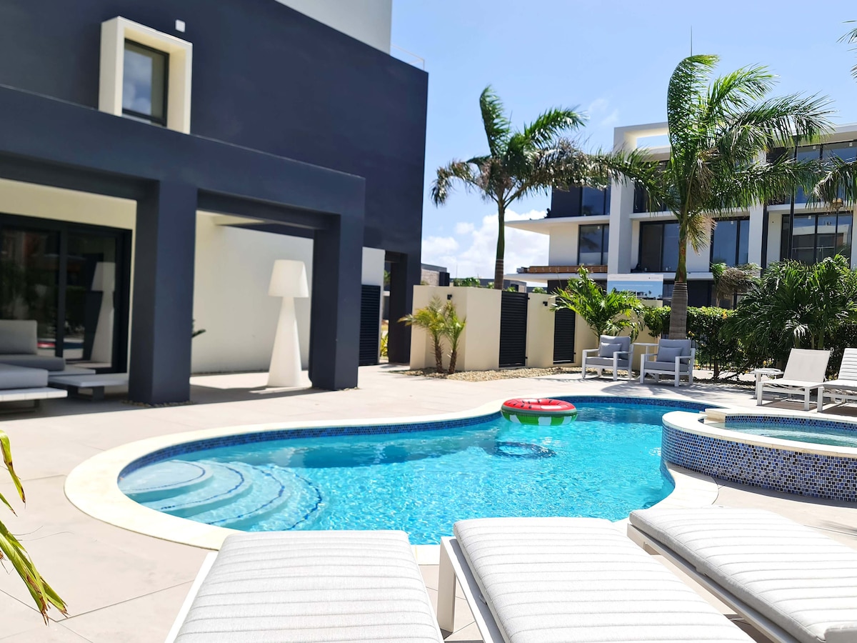 Moderna casa ubicada en la mejor zona de Aruba. Totalmente equipada para que usted se asegure de pasar su mejor estadía o vacaciones en la isla. Ubicada a solo pocos minutos de las mejores playas en el complejo residencial Gold Coast Villas, el cual cuenta con una casa club, gym, canchas de tennis, restaurant, 3 piscinas dentro del complejo y todo esto podrá ser disfrutado por nuestros huéspedes. Contamos con: piscina privada, aire acondicionado, wifi, Directv, cocina completa y mucho mas.
