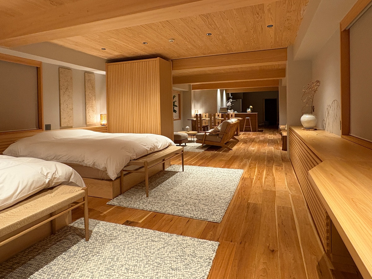 整套公寓只归1组/位于京都中心/车站步行6分钟/配备Wi-Fi/可让6位房客入住/高级优雅的现代民宿