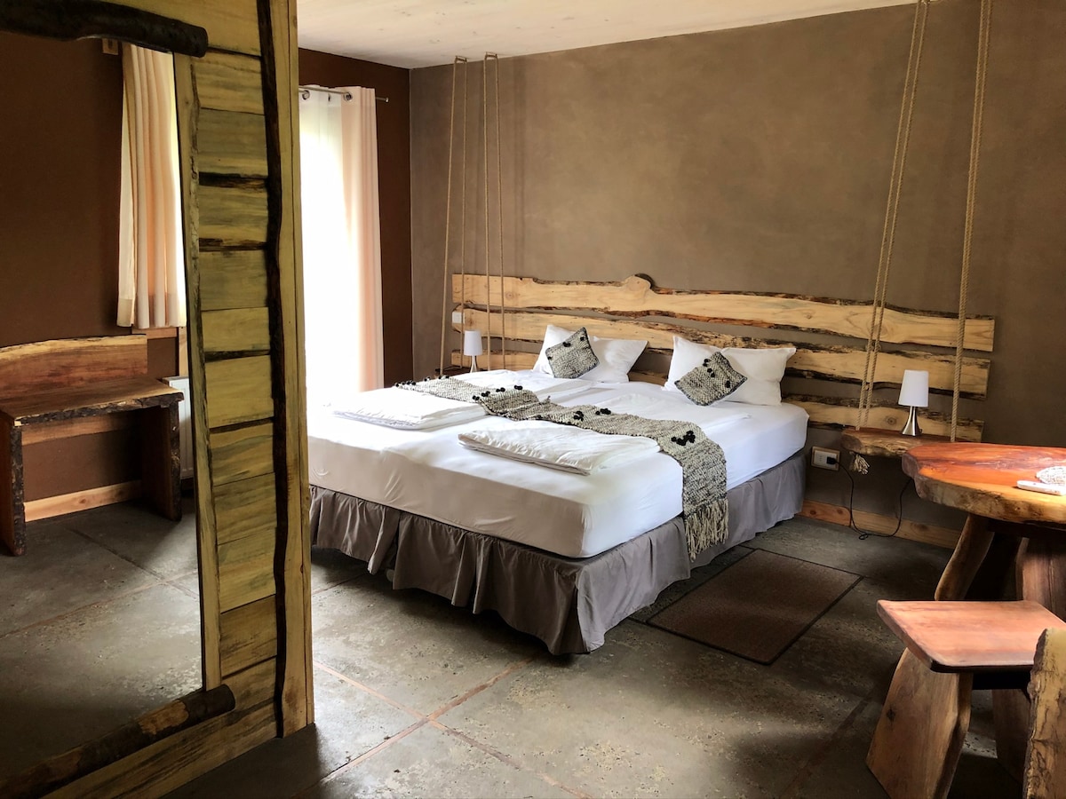 Double room with private bathroom, central heating, with breakfast included and free access to the swimmingpool in summer and the interpretive trail. Wifi Starlink. The Nalcas Malalcahuello Hotel is close to the Corralco Ski & Snowboard Center, Malalcahuello National Reserve and Conguillío Park to enjoy the hot springs, climb volcanoes, trekking or venture among the treetops with the canopy. Restaurant service open every day. @hotelnalcasmalalcahuello