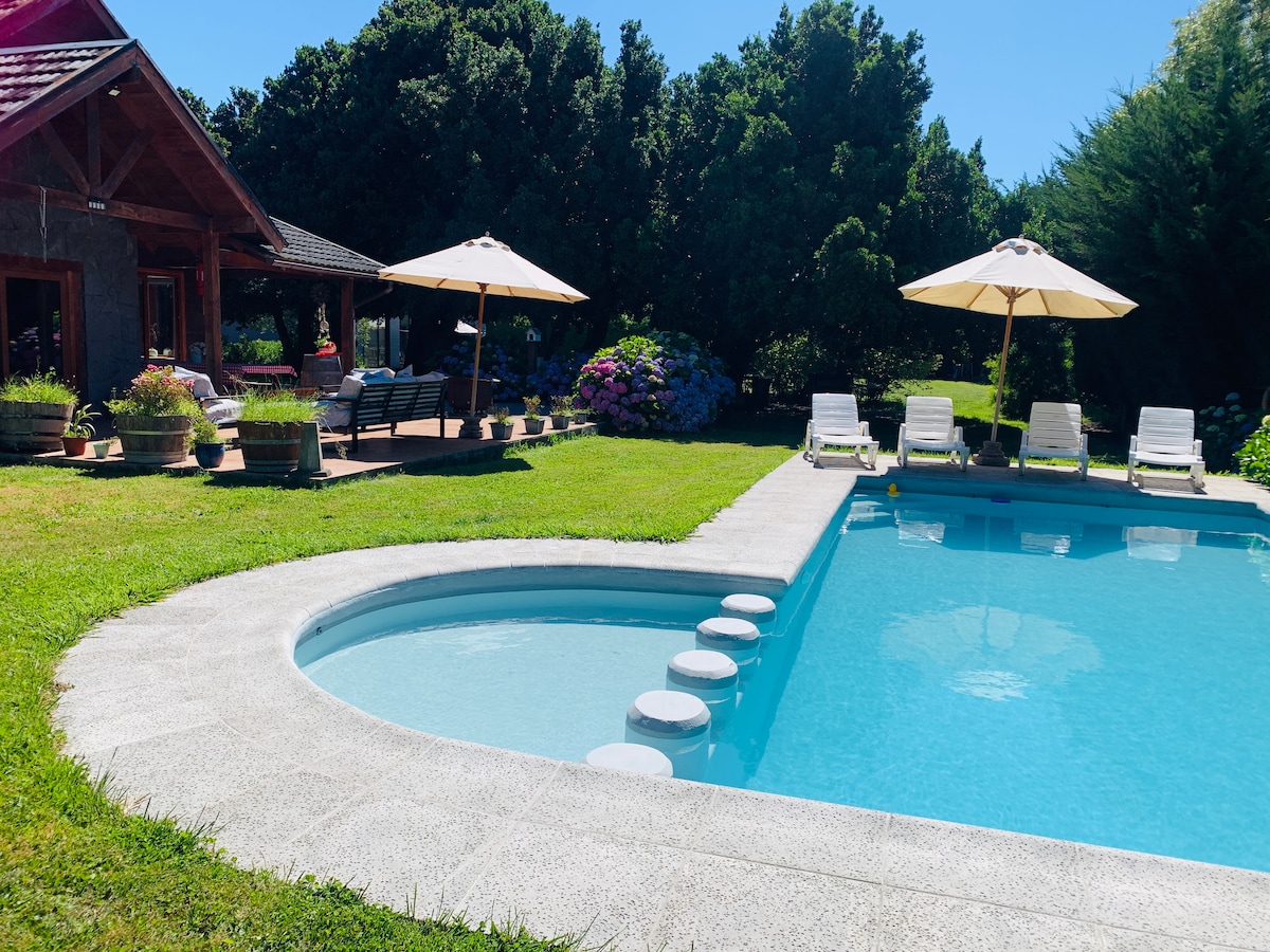 IDEAL para 2 a 3 familias, con cinco dormitorios (tres en Suite). Casa en Condominio con doble control de acceso. Tranquilidad, silencio y privacidad. Casa de Campo en el bosque, de un piso, con espacios amplios, comodidades y entretenciones. PISCINA TEMPERADA (del 15 de nov al 15 de abril). TINAJA todo el año, dos terrazas amahaca, hermoso jardin y parrilla. Además tiene WIFI de Fibra Óptica, Cocina amplia full equipada. Smart Tv en 2 suites y living, Amahaca, Columpio y Cama Elástica.