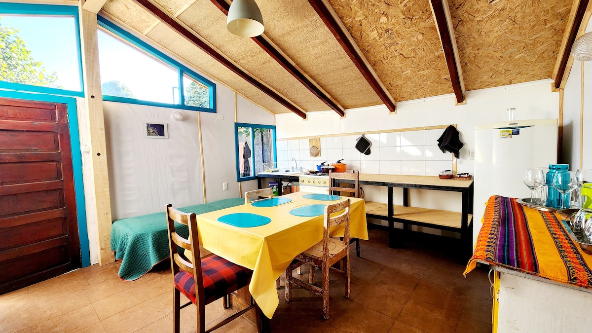Ubicado en un entorno natural incomparable, nuestro alojamiento es el refugio perfecto para aquellos que buscan relajarse y reconectarse con la naturaleza situado a 2 km del parque nacional Villarrica, a 4 km de termas geométricas,a 1 km de termas el rincón,a 50 MTS de restaurante.cercano a muchos lugares de interés ideal para trekking ,cercano a lagos ,puedes visitar Pucón , Panguipulli o Huilo huilo, con internet y televisión cuenta con toallas, ropa de cama,calienta cama ,cocina equipada.