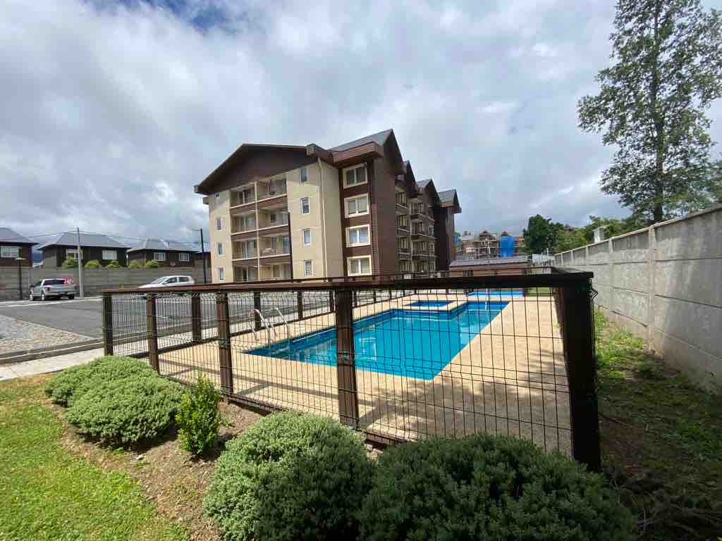 Acogedor dpto tipo estudio en Pucón, perfecto para 2 personas. Comino al Volcán, a 5 minutos en auto al centro de Pucón. Cuenta con cama matrimonial, ropa de cama, toallas, cocina equipada con encimera y horno eléctrico, refrigerador, microondas, hervidor, secador de pelo, SmartTV, Wifi, terraza y estacionamiento privado. Acceso controlado y vigilancia 24 hrs. Adicionalmente posee lavandería espacios comunes como quincho, piscina interior, exterior y sala de juegos, previa reserva