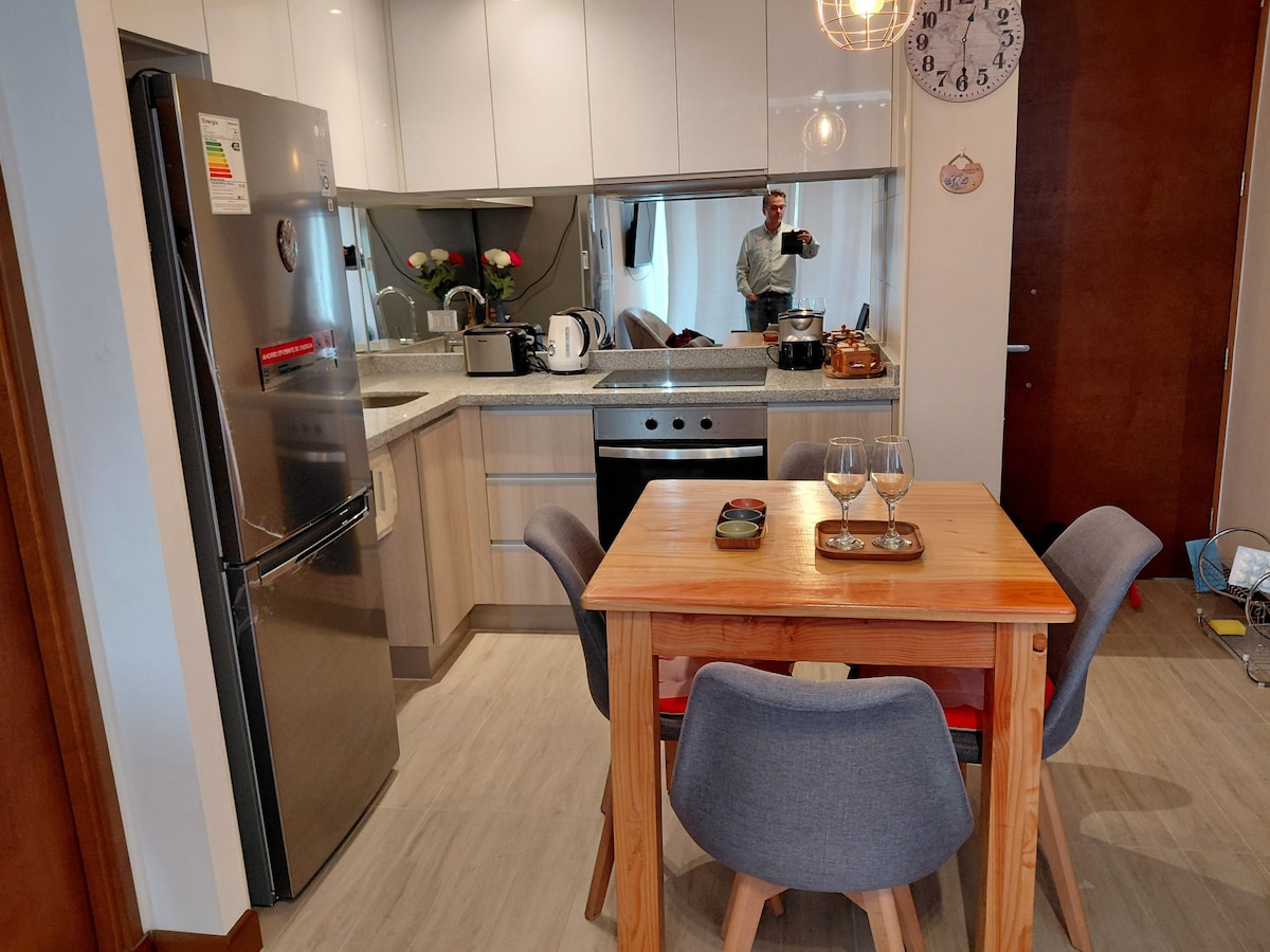Exclusivo departamento en condominio privado para seis personas, amplio y cómodo, con espectacular vista panorámica al lago Villarrica. El departamento esta full equipado, wifi, netflix, Tv satelital, amplia terraza con parrilla y comedor exterior. El edificio cuenta con piscina, hot tub, quincho, sala de entretenimiento, lavandería, gimnasio, estacionamiento privado y acceso a la playa, con reposeras y sombrillas. Todo a tu servicio para que tu estadía sea tranquila, relajada e inolvidable.
