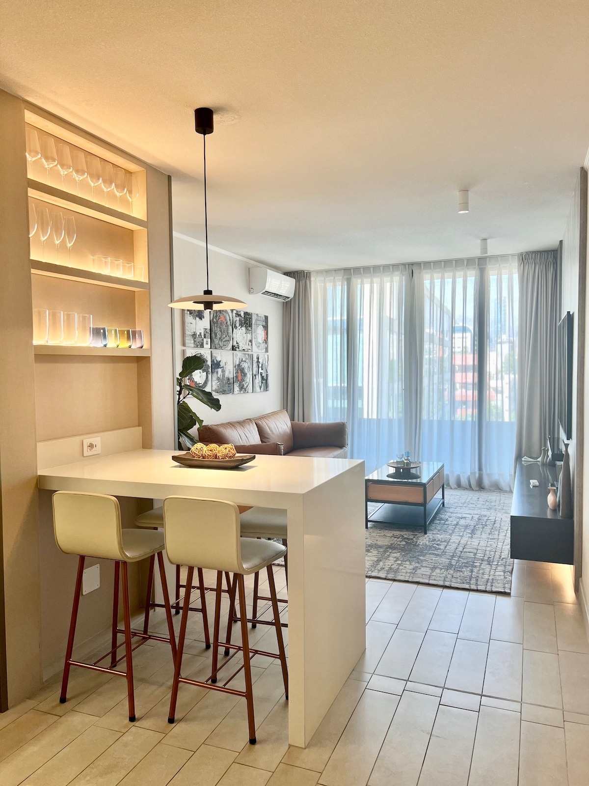 Enjoy a great experience in this save location in Barrio El Golf. Modern and cozy apartment with a privileged location, in the heart of gourmet cuisine and luxury shops of Santiago de Chile "Barrio El Golf". The neighborhood is characterized by its great architectural value and its attractive and varied cultural, gastronomic, and recreational offer. (restaurants, cafes, bars, theaters, museums, design galleries, etc). A few meters away is the metro station ¨Escuela Militar¨ and Plaza Peru.