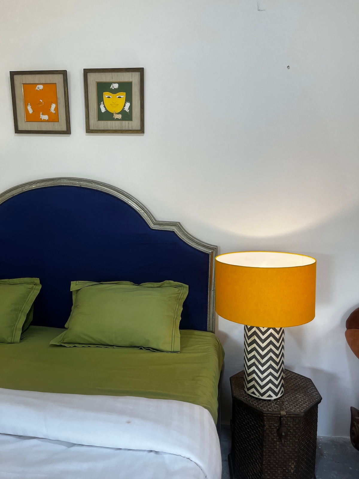 "The Golden Door" is an artistically designed room with an attached bathroom on a private terrace with panoramic views of the Aravali Hills. Ideal for couples, solo travelers, and business professionals, this accommodation seamlessly blends aesthetics and functionality. Its central location grants easy access to major attractions. In essence, "The Golden Door" transcends conventional stays. With its central location, artistic design, and comfort, it provides a simple yet unique stay.