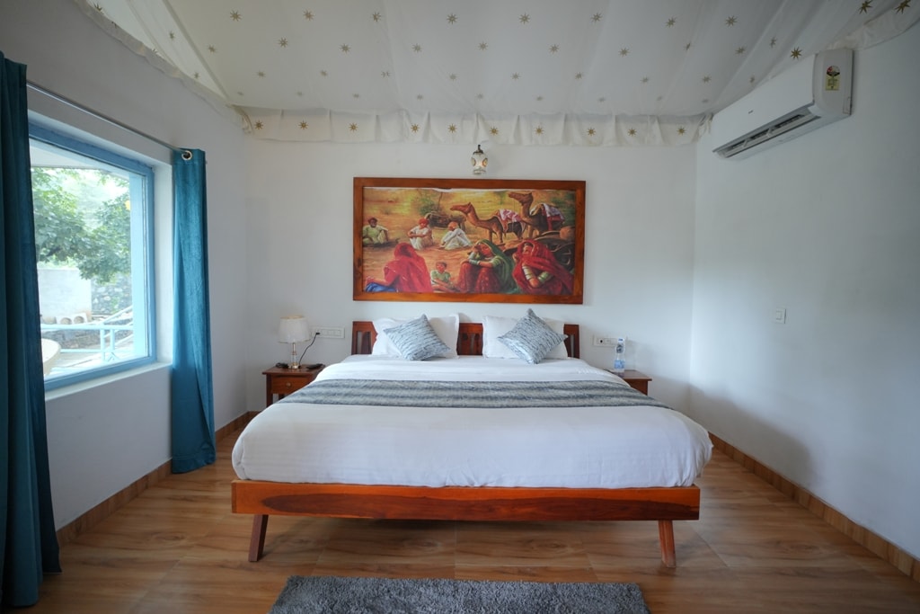 Spacious and tastefully appointed, the Superior Deluxe Room at Indulge Udaipur by PACK brings together modern calm and heritage warmth. Step out onto your private porch to catch golden views of the surrounding estate. Ideal for couples or solo travelers looking to stretch out, stay a while, and soak in the stillness of Udaipur’s countryside - wrapped in quiet sophistication.