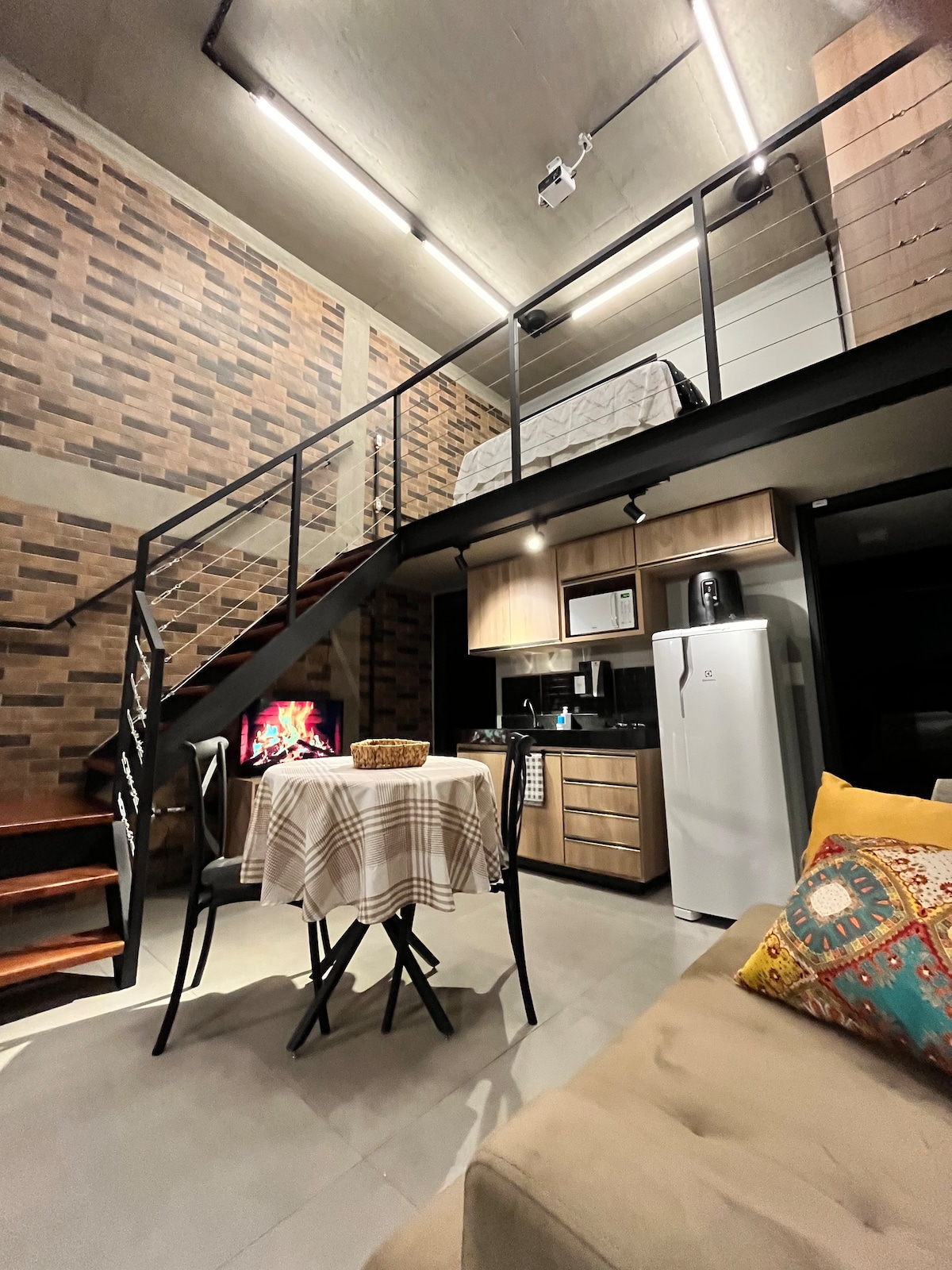 Relaxe neste espaço calmo e cheio de estilo com vista para a mata. O Loft Ybira fica em um bairro com supermercados, padarias e diversos restaurantes com fácil acesso para o centro da cidade. O hóspede terá acesso no primeiro piso a Sala de TV conjugada com sala de estar, cozinha equipada, banheiro e área externa para relaxar. No segundo piso está o quarto, uma área de trabalho (com internet ultra rápida) e um telão com caixas de som no teto, que transforma o quarto em um cinema.