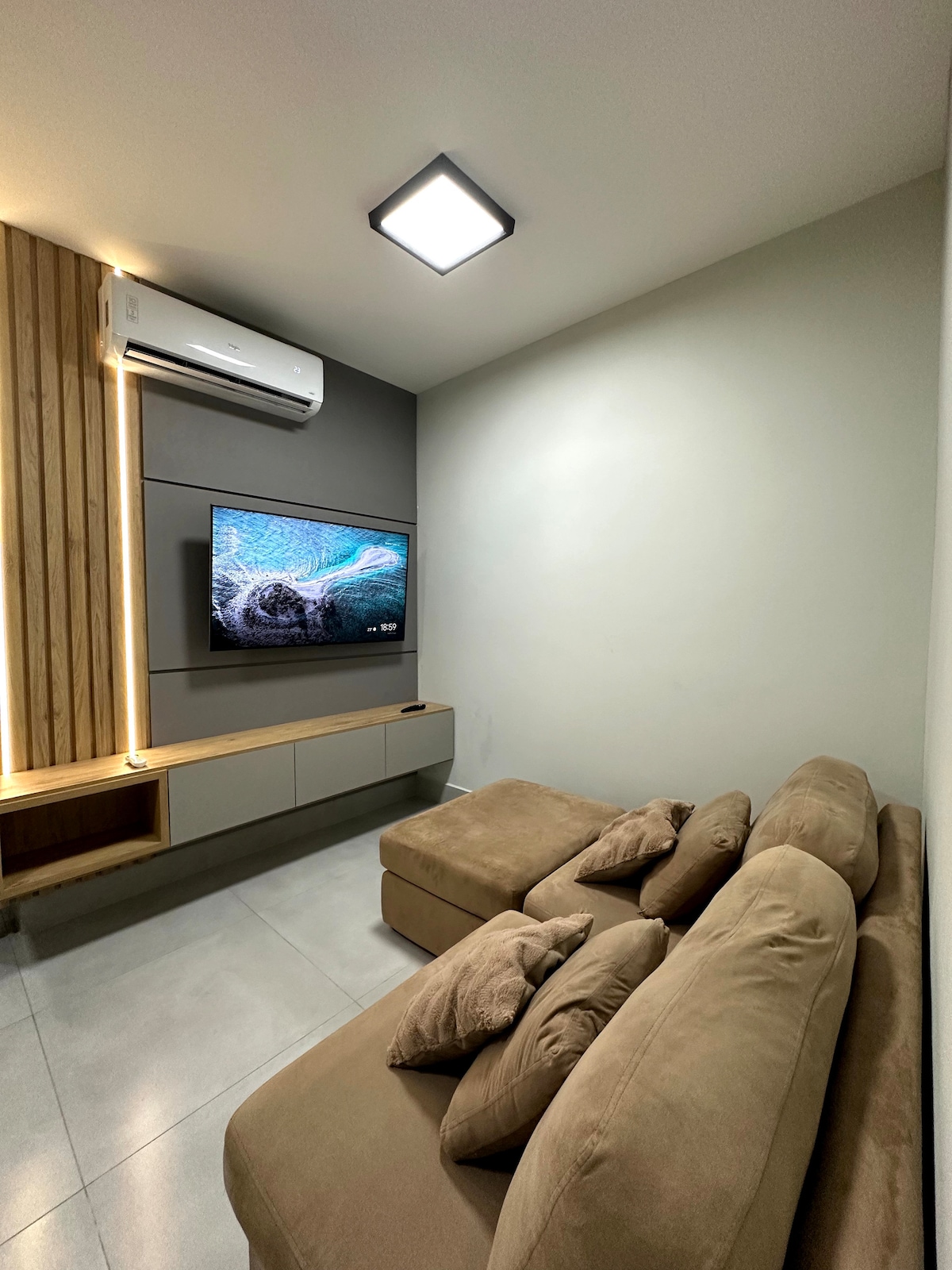 VEJA O PORQUÊ VOCÊ DEVE SE HOSPEDAR AQUI: ♦Apartamento novo, com 2 quartos: •O de casal com cama queen, *ar condicionado*, closet e suíte. O de solteiro com climatizador, 2 camas de solteiro, bancada de trabalho e banheiro social. Sala de jantar e estar conjugados, cozinha e área de serviço também conjugados. Apartamento completo e linda vista da cidade. Portaria 24hrs, garagem coberta, elevador.