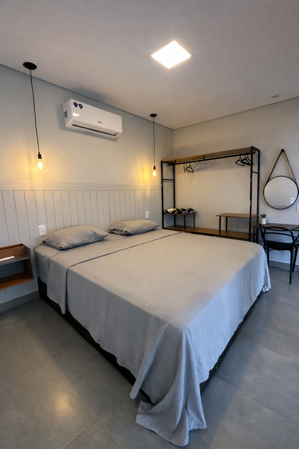 Studio moderno em Araxá, com ar-condicionado, cozinha equipada e garagem privativa. Espaço recém-construído, pensado para oferecer conforto e praticidade, ideal para viagens a trabalho ou lazer. Localização estratégica, com fácil acesso às principais vias da cidade e a poucos minutos do centro e do Grande Hotel e Termas de Araxá. O local conta com monitoramento por câmeras nas áreas externas e acesso controlado para maior tranquilidade.