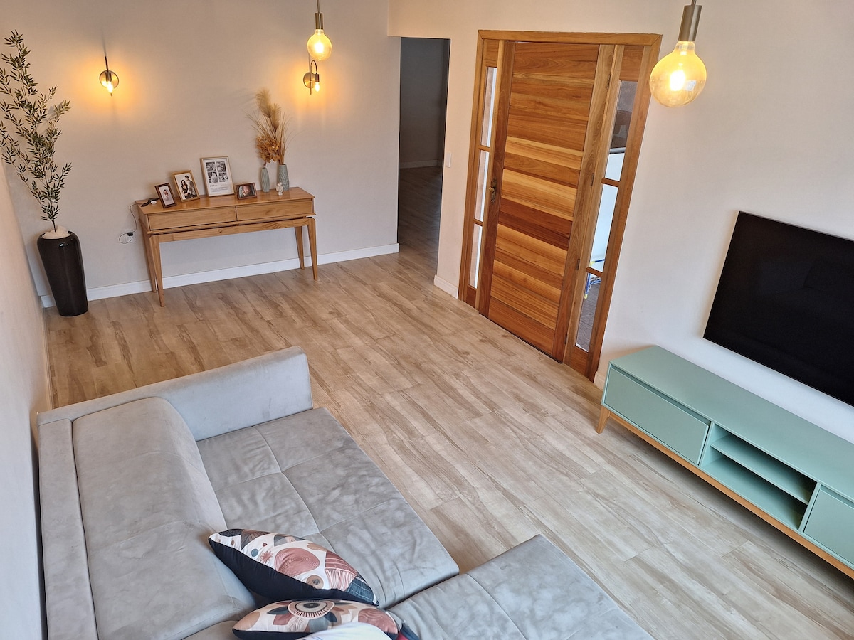 Casa de 1 andar com amplo espaço e quintal grande. Toda equipada inclusive com ar condicionado em todos os quartos e 3 TVs com fire stick que dá acesso a Internet. A cozinha, além de todos eletrodomésticos básicos, conta com lava louças, air fryer e sanduicheira. A casa possui vários pontos de rede para descanso. A Suite conta com banheira de hidromassagem e um lindo jardim vertical particular.