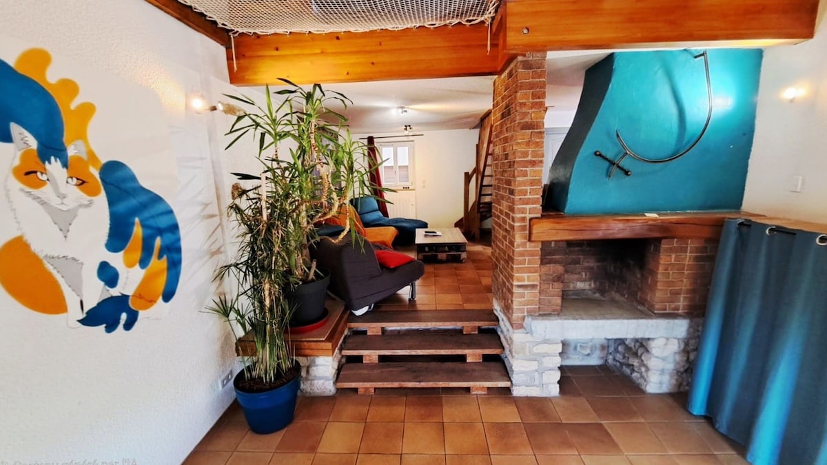 "la Fugue enchantée : un espace calme, atypique et bien équipé. En centre bourg, à quelques minutes des commerces et de la gare TGV/TER (aucunes nuisances sonores), cette maison indépendante de 104 m² peut aisément accueillir 6 à 8 personnes. Grande terrasse avec vue sur les pâturages. Au cœur des paysages viticoles et forestiers du Jura, vous profiterez des activités sportives et culturelles, des manifestations locales, des produits locaux et des sites patrimoniaux et naturels remarquables.