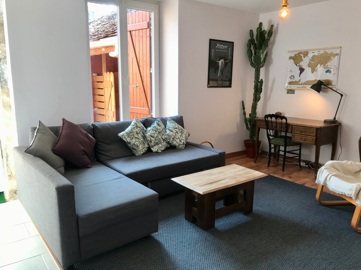 Bienvenue au 35, belle maison de ville entièrement rénovée avec goût et attentions pour un séjour agréable et confortable. À 2 min. à pieds du centre ville, le 35 est une petite maison composée au RDC d’une grande pièce à vivre avec cuisine toute équipée donnant sur un petit extérieur pour déjeuner sur la terrasse sous la treille ou se reposer dans l’herbe, d’un espace salon et d’une entrée avec toilettes. À l’étage vous disposerez de 2 belles chambres et d’une salle de bains avec toilettes.