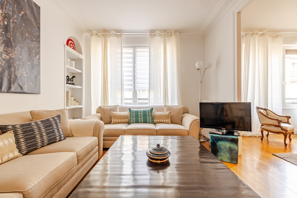 Apartment in the heart of popular avenue the champs elysees, 5 minute walk away from arch de triomphe . near to the famous monuments of paris best location ever. large one bedroom flat with 2 confortable convertible sofa's that turn into double bed. 2 bathrooms full open kitchen. large smart tv's with wi-fi included. Quiet flat in quiet residence with security. to ensure and enjoy your holidays