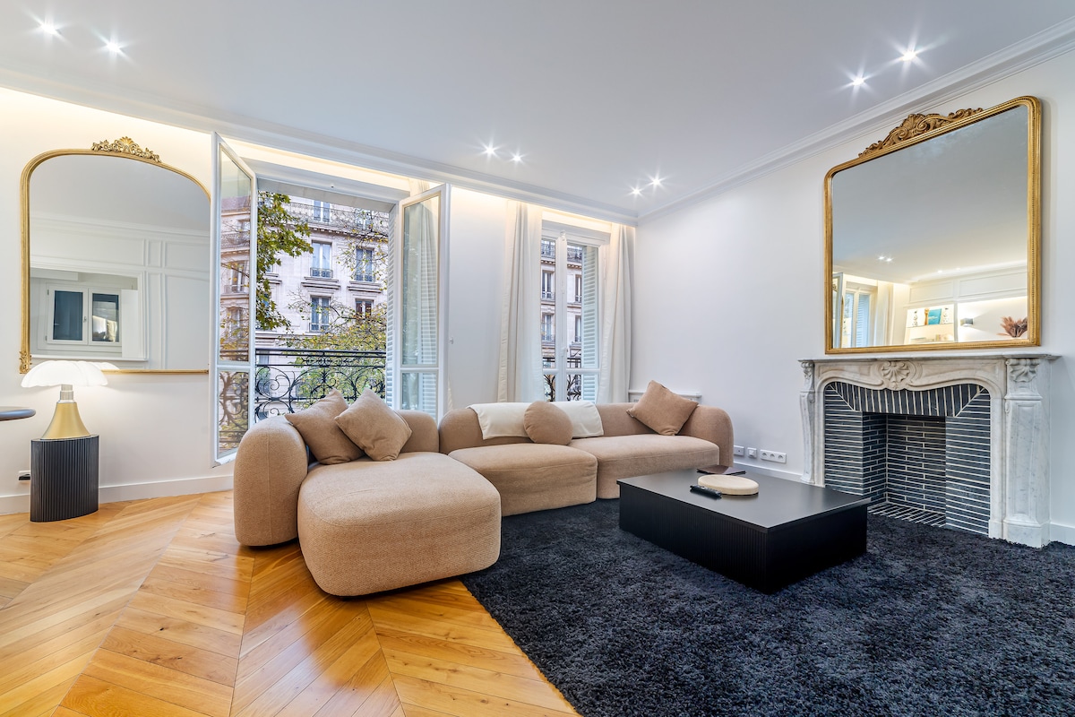 Discover this magnificent 90m² air-conditioned apartment, designed like a hotel suite and boasting a beautiful 25m² private terrace in the heart of Paris's 8th arrondissement. Completely renovated by an architect, it is located on the 5th floor (with elevator) of a traditional building with excellent security. It's the ideal place for a memorable stay in the capital.